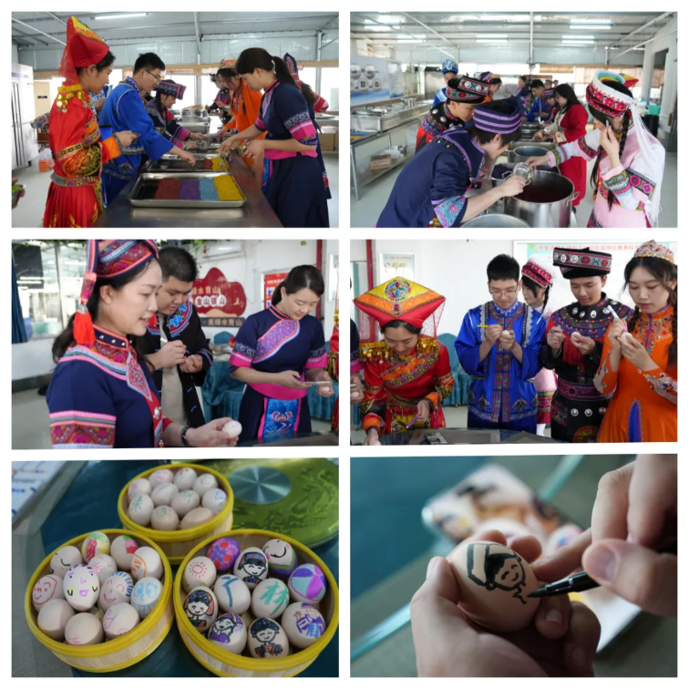 彩蛋繪制區(qū)域同樣熱鬧非凡。職工們手持畫筆,在煮熟的雞蛋上精心描繪民族服飾、木棉花等極具民族特色的符號,同時書寫“綠色發(fā)展”“民族團結(jié)”等美好祝福。彩蛋所蘊含的新生與希望,與廣林人“打通兩山轉(zhuǎn)化通道 創(chuàng)造綠色生態(tài)價值”的使命不謀而合,承載著大家對企業(yè)美好發(fā)展的深切期許。